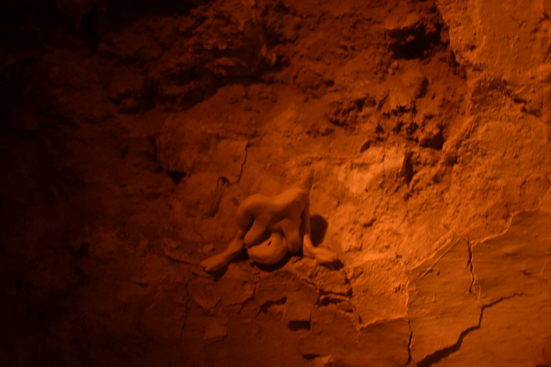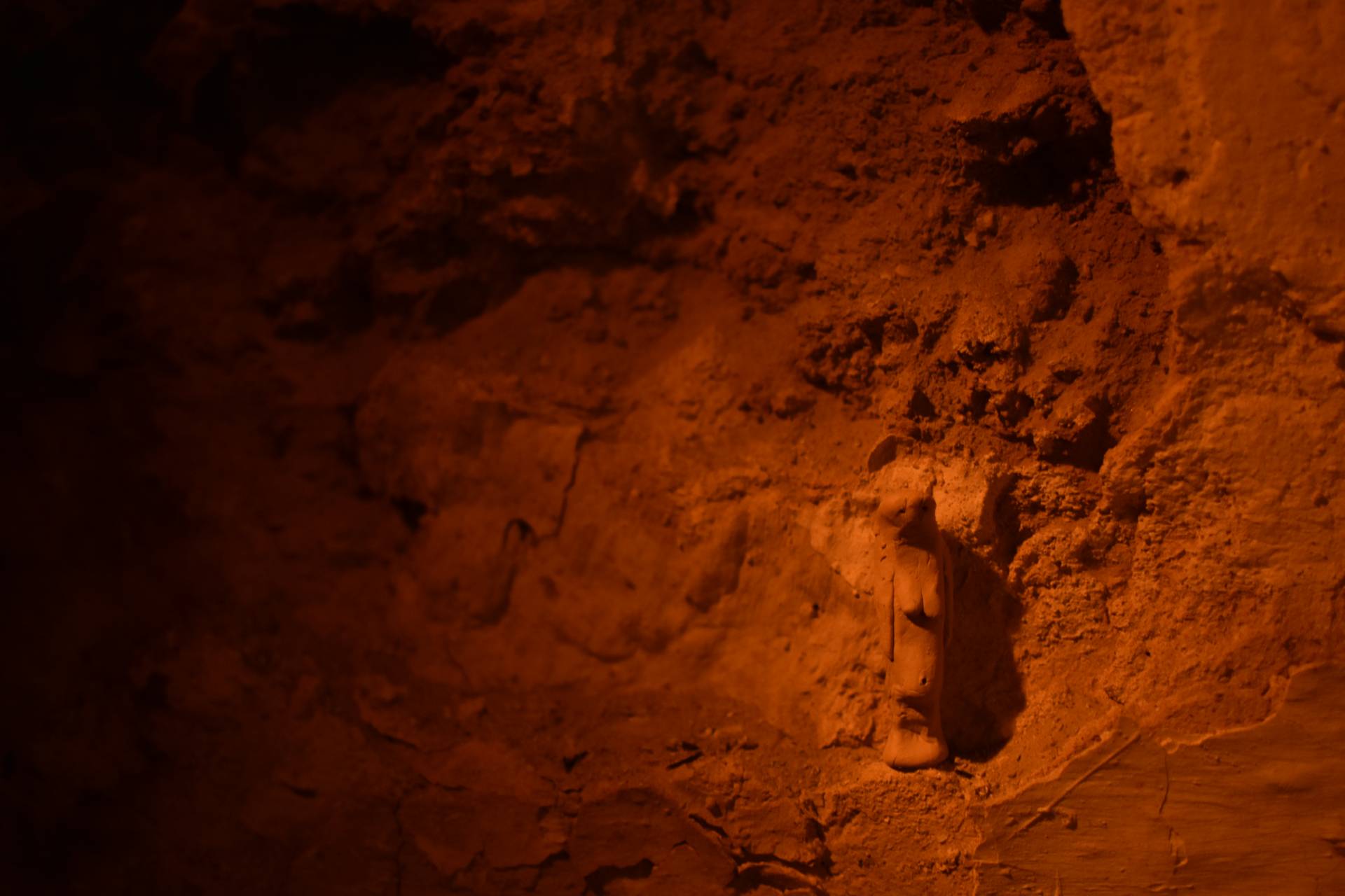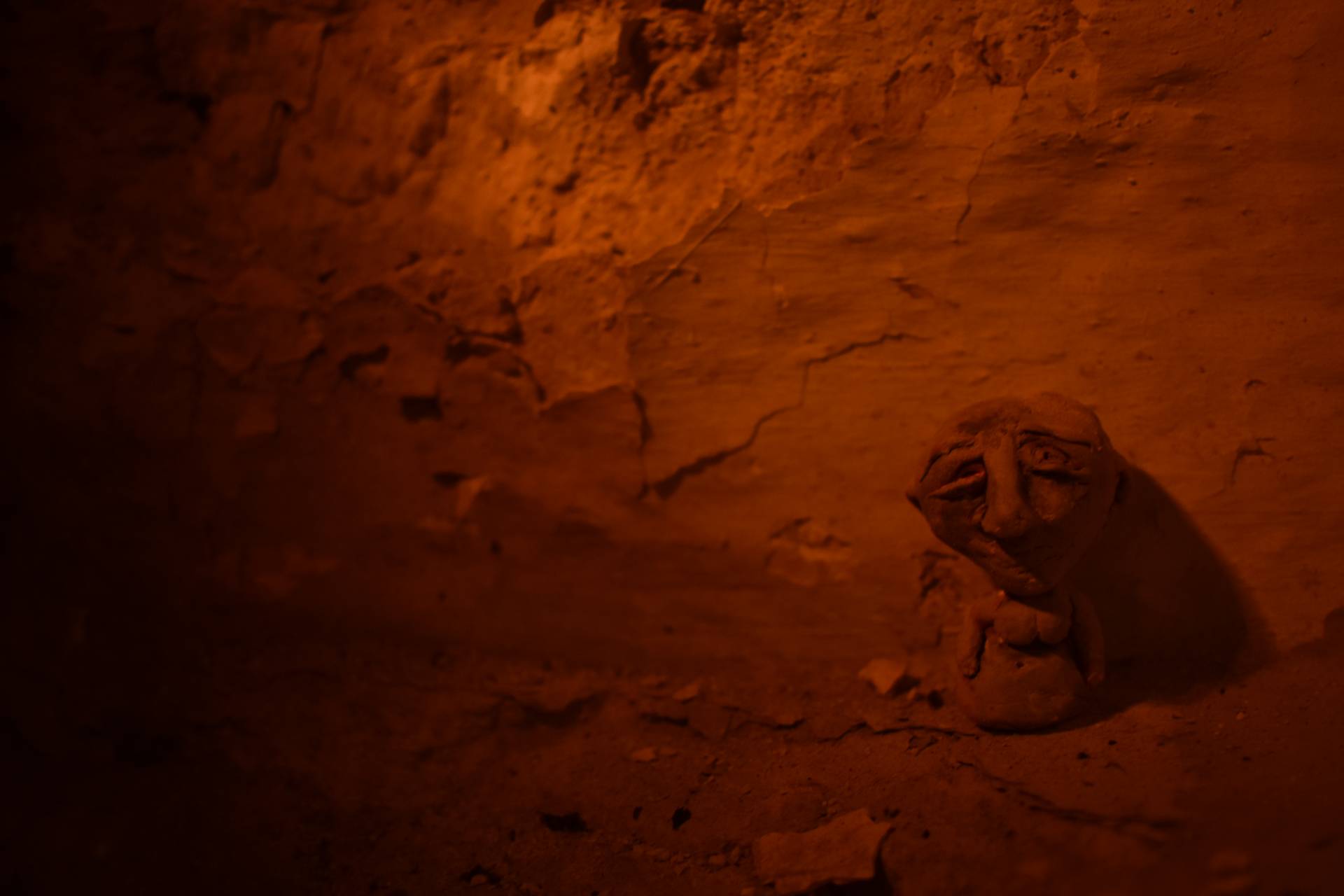 Series of clay statues, photographed in the Caves of Granada, Spain