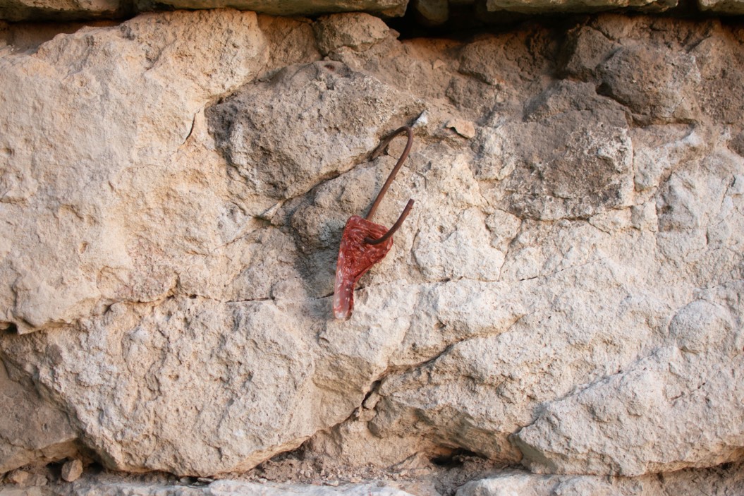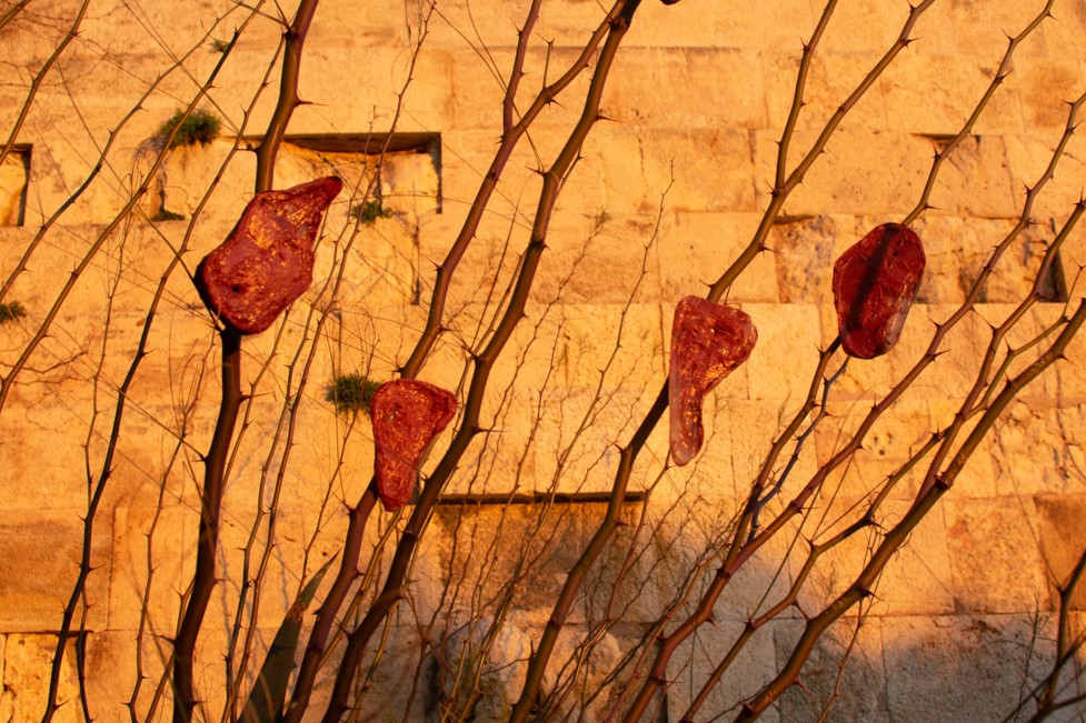 Asteroula (100x45cm) Wooden swing, pantyhose, cotton, bones, baby clothes The Caretaker (155x45cm) Mannequin, pantyhose, cotton, stones
