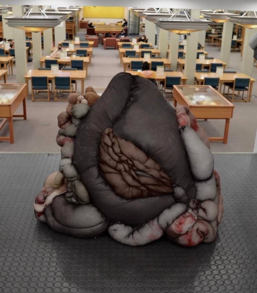 Asteroula (100x45cm) Wooden swing, pantyhose, cotton, bones, baby clothes The Caretaker (155x45cm) Mannequin, pantyhose, cotton, stones