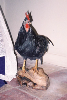*the rooster died from natural causes in a local farm in Chalkida.