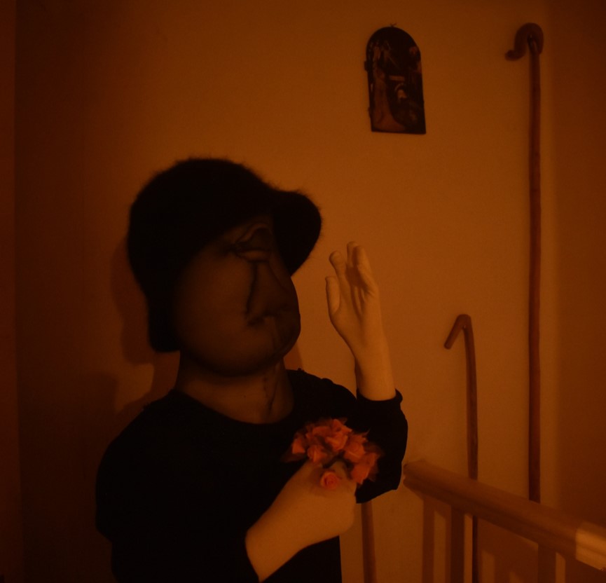 Asteroula (100x45cm) Wooden swing, pantyhose, cotton, bones, baby clothes The Caretaker (155x45cm) Mannequin, pantyhose, cotton, stones